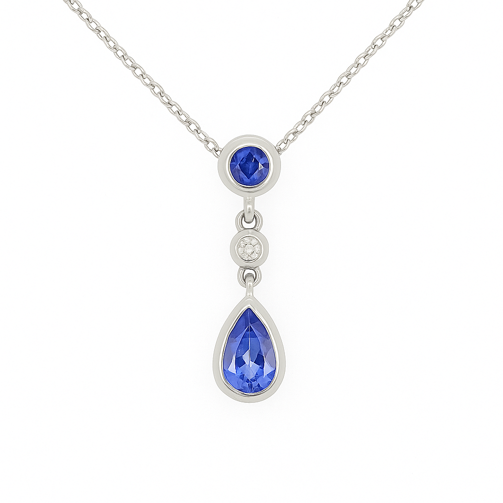 9ct White Gold Tanzanite & 0.02ct Diamond Pendant