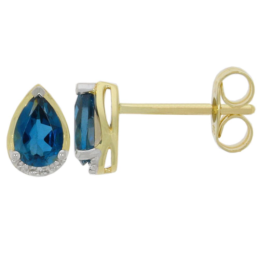 9ct Yellow Gold 0.01ct Diamond & Pear Cut London Topaz Studs
