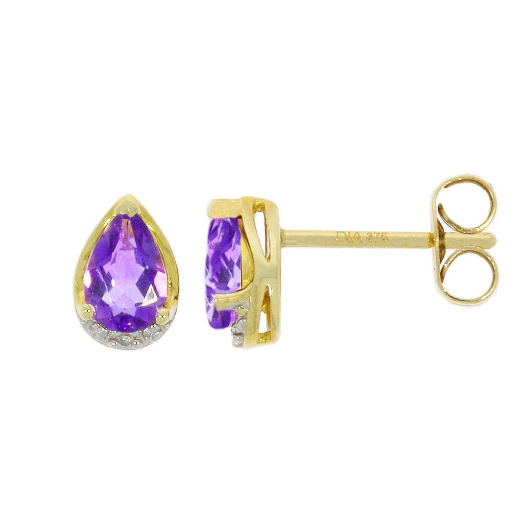 9ct Yellow Gold 0.01ct Diamond & Pear Cut Amethyst Studs
