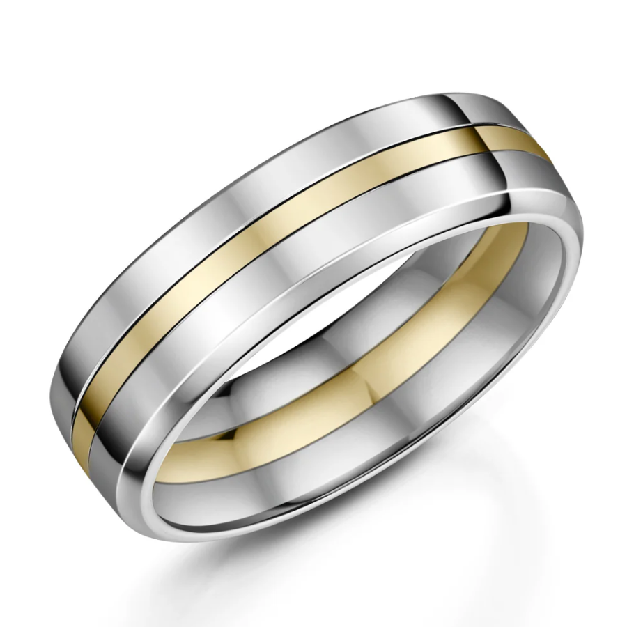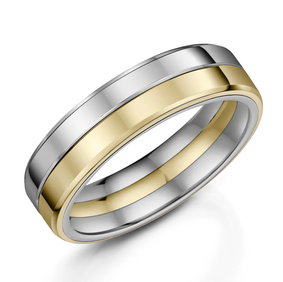 9ct Yellow Gold & Zirconium 6mm Ring Size W