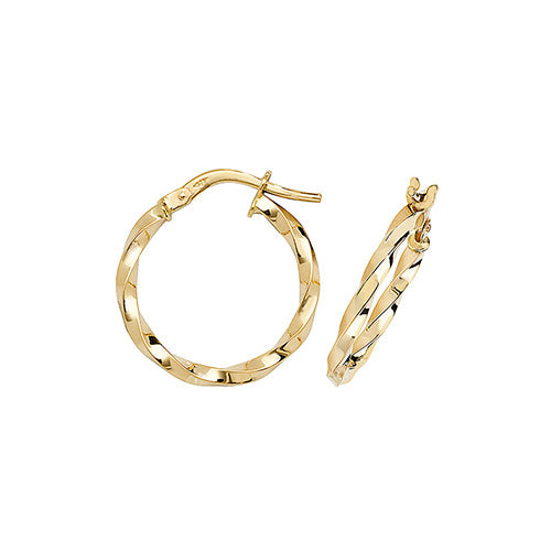 9ct Yellow Gold 15mm Twist Hoop Earrings