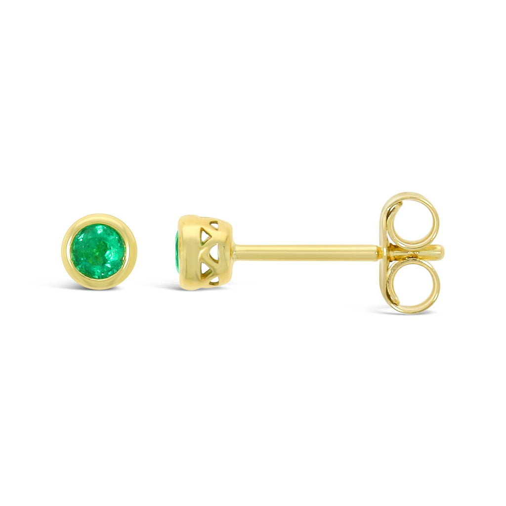 9ct Yellow Gold 3mm Round Brilliant Cut Emerald Studs
