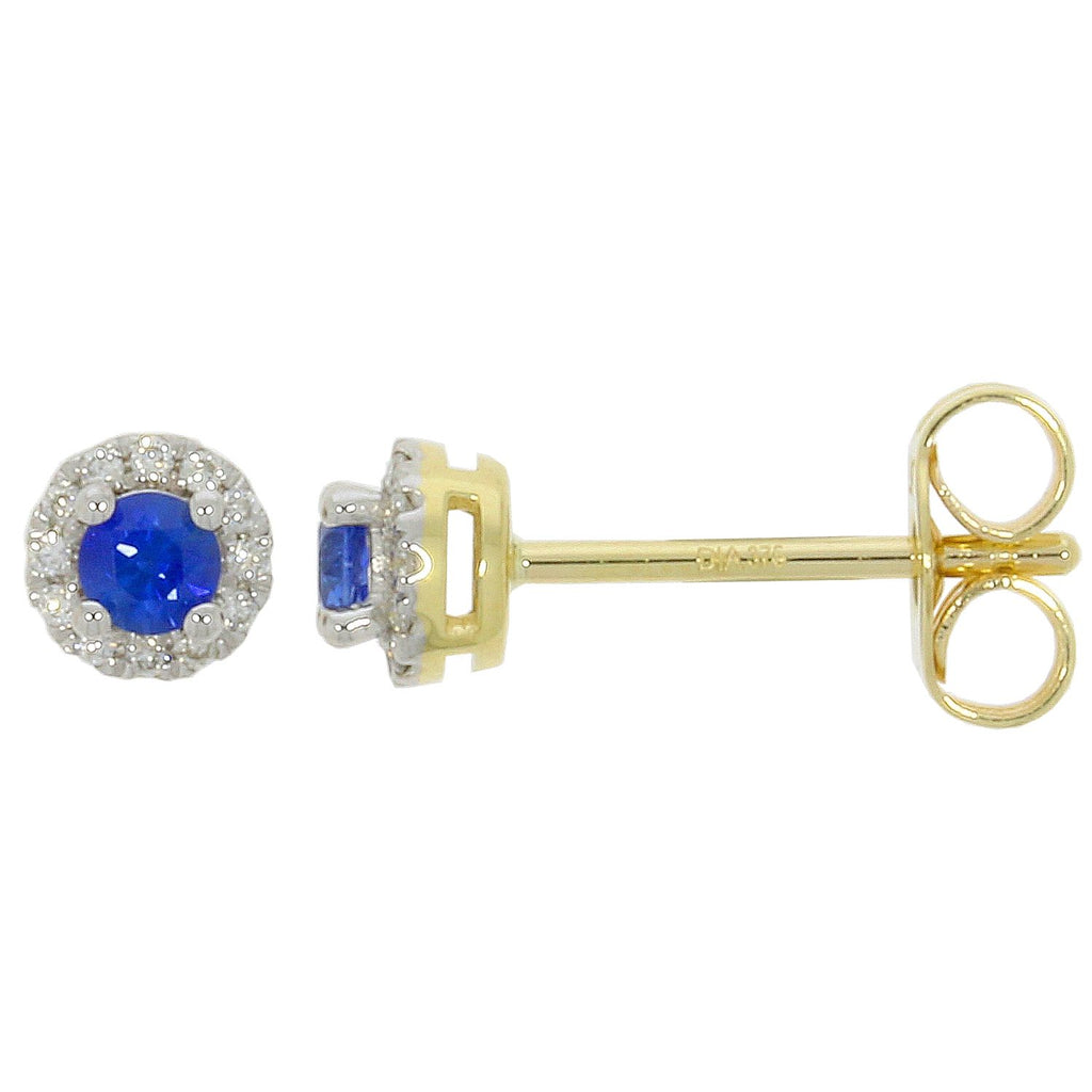 9ct Yellow Gold Ceylon Sapphire & 0.07ct Diamond Studs