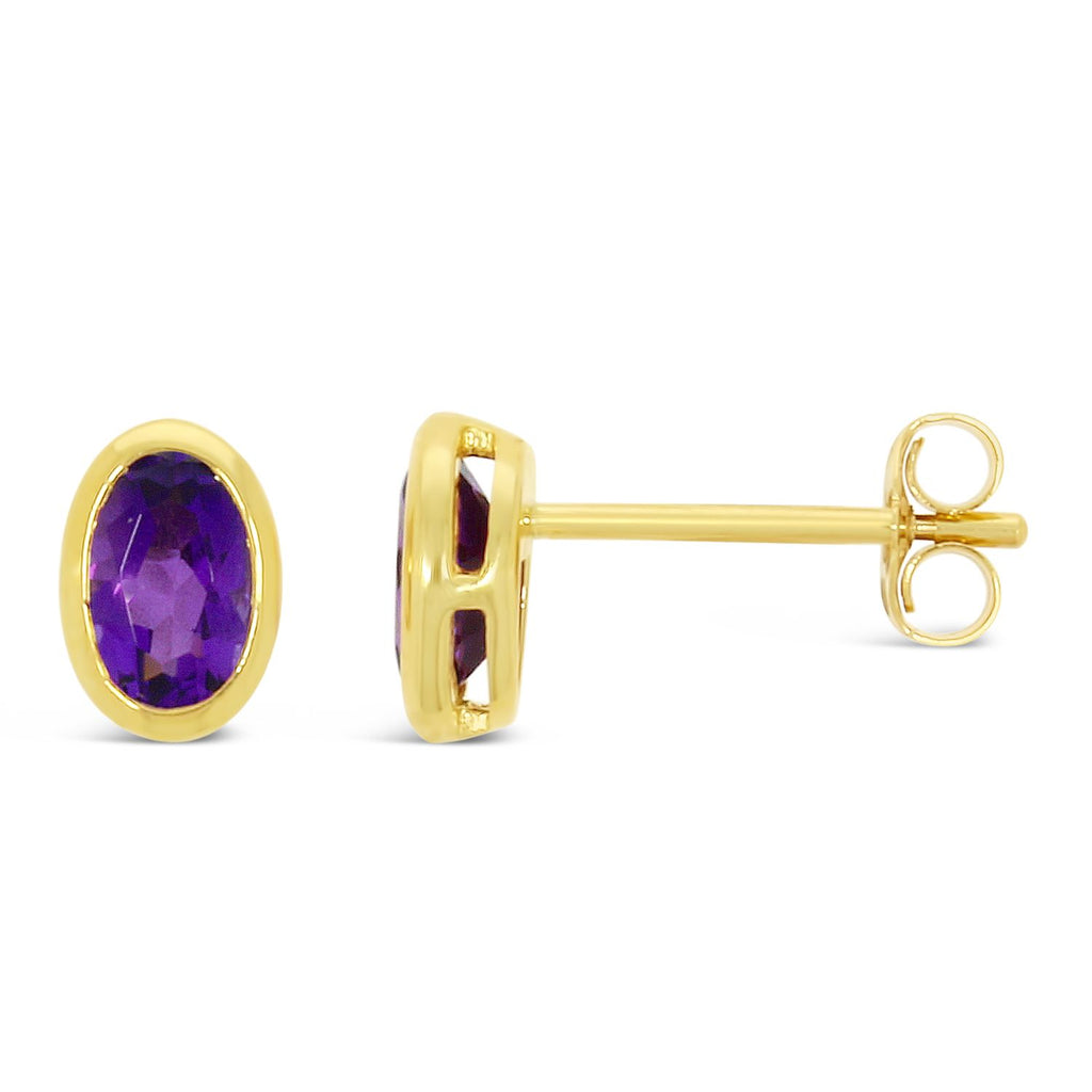 9ct Yellow Gold Bezel Set Oval Cut Amethyst Studs
