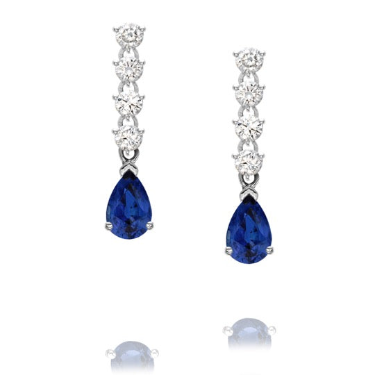18ct White Gold 0.30ct Diamond & 0.95ct Pear Cut Sapphire Drop Earrings