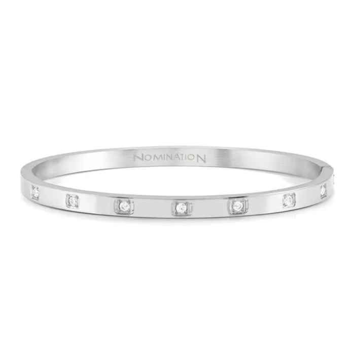 Stainless Steel Bangle with White Cubic Zirconia (Medium)