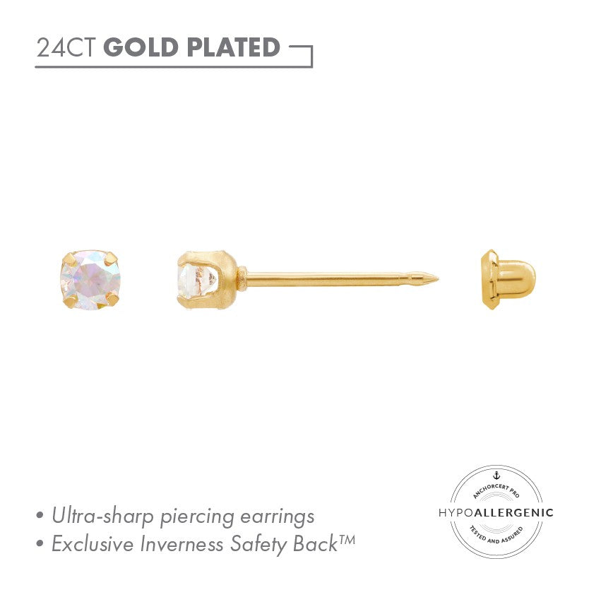 24ct Gold Plated Stainless Steel 3mm Iridescent Cubic Zirconia Stud Earrings