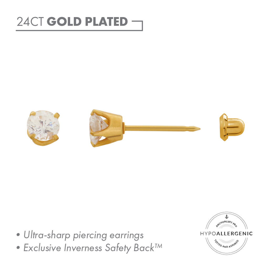 24ct Yellow Gold Plated 5mm Cubic Zirconia Stud Earrings
