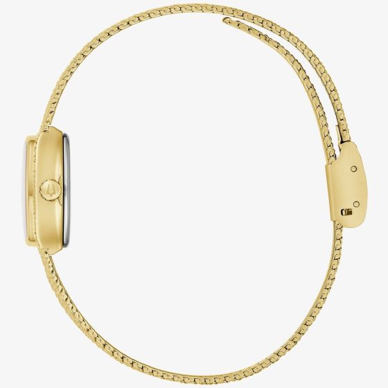 This timepiece showcases its luxury with a gold-plated stainless steel case and bracelet. The highlight of this watch is its captivating green dial, which adds a unique touch of sophistication. The dial features gold-tone hands and markers, enhancing readability while maintaining a sense of timeless beauty. Powered by quartz movement, this watch ensures accurate timekeeping, making it not just a fashion statement but also a reliable companion for daily wear.