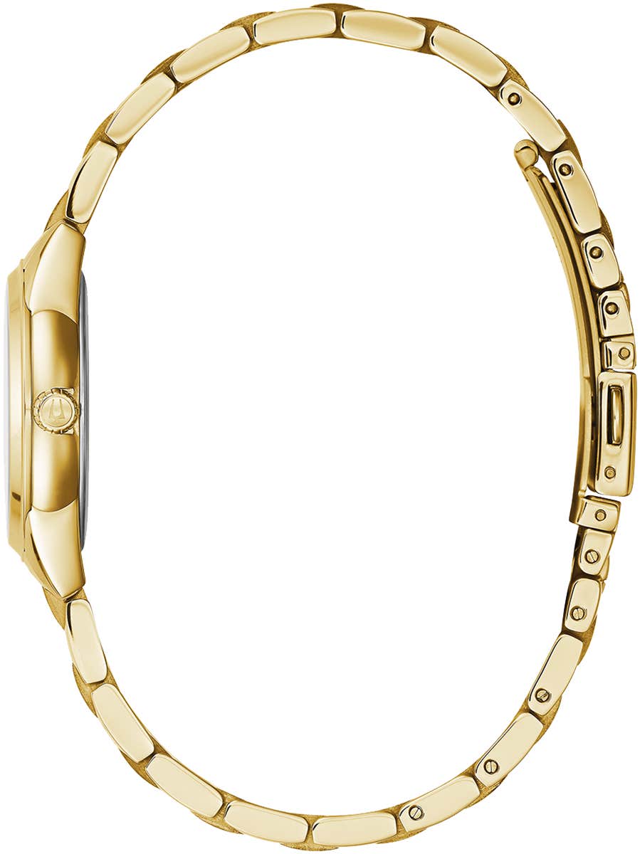 Bulova DRESS 97L151 is an amazing and eye-catching Ladies watch. Case material is Stainless Steel and the Salmon dial gives the watch that unique look. This watch is market as water resistant. It means it can withstand slight splashes and rain, but is NOT to be immersed in water. We ship it with an original box and a guarantee from the manufacturer.