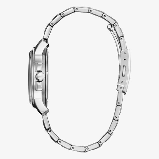 This classic men's Citizen watch offers timeless style and everyday versatility. It features a 37mm stainless steel case, a black dial with a day/date display, and a matching bracelet with a double push-button folding clasp. Powered by Eco-Drive technology, it runs on any light and never needs a battery. Water resistant to 100 metres.