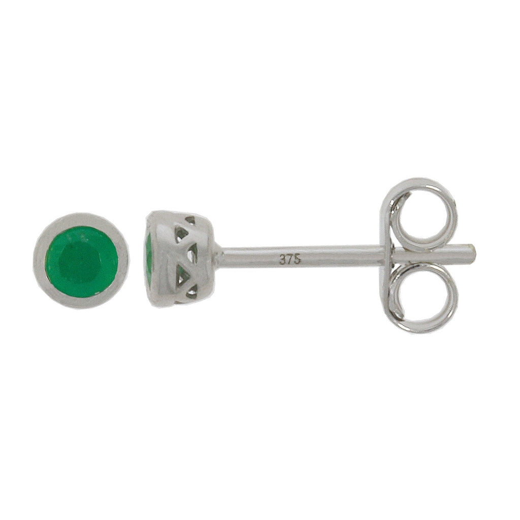 9ct White Gold Round Brilliant Cut Emerald & 0.07ct Diamond Studs