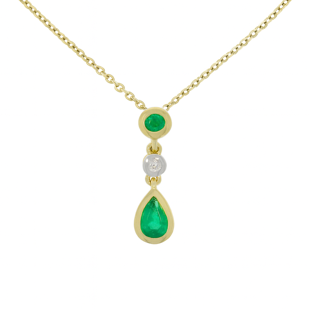 9ct Yellow Gold 0.75ct Emerald and 0.02ct Diamond Necklace