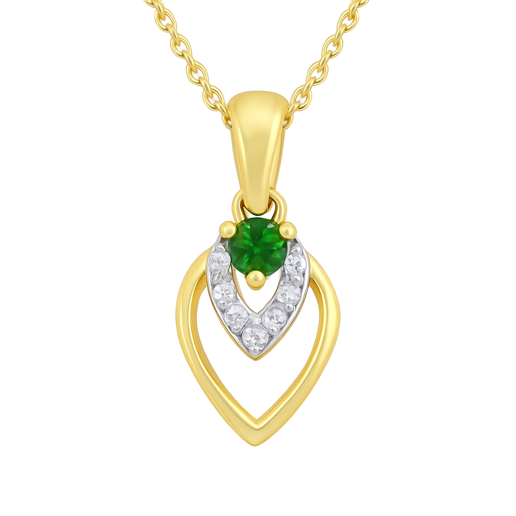 9ct Yellow and White Gold 0.04ct Diamond & Emerald Pendant
