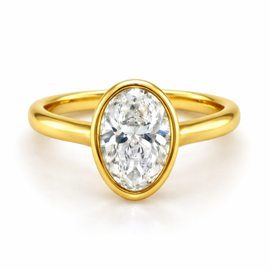 18ct Yellow Gold Lab Grown 1.50ct Oval Cut Bezel Set Diamond Ring M
