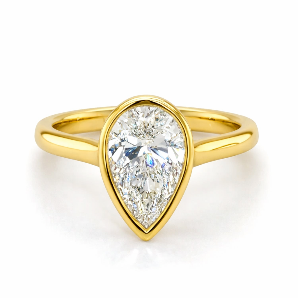 18ct Yellow Gold Lab Grown 1.52ct Pear Cut Bezel Set Diamond Ring M