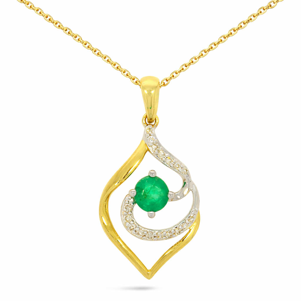 9ct Yellow Gold 0.28ct Emerald & 0.06ct Diamond Pendant
