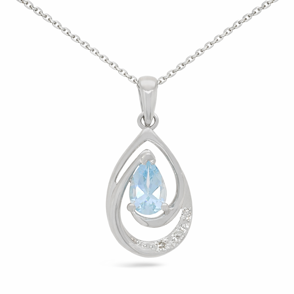 9ct White Gold Aquamarine & 0.02ct Diamond Pendant