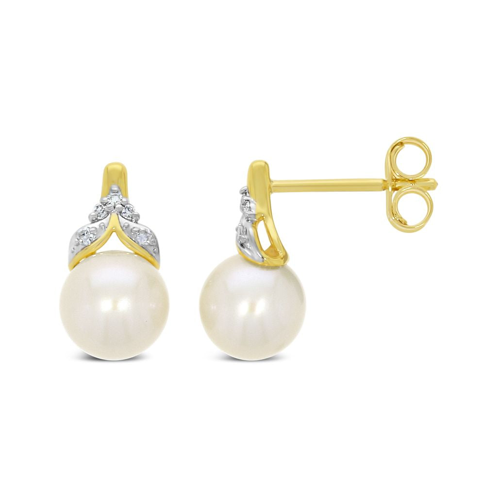 9ct Yellow Gold Freshwater Cultured Pearl & 0.05ct Diamond Studs