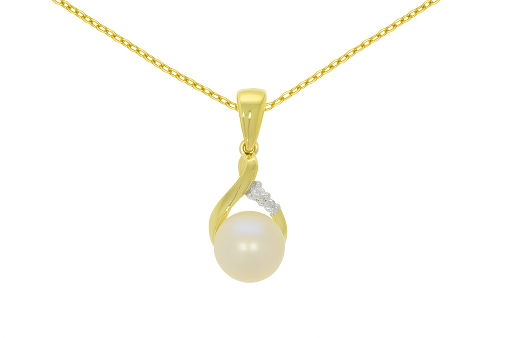 This 9ct yellow gold pendant features a central pearl and diamond stone detail. Please note, pendants are not sold with chains to allow you to pick the right length and style for you.