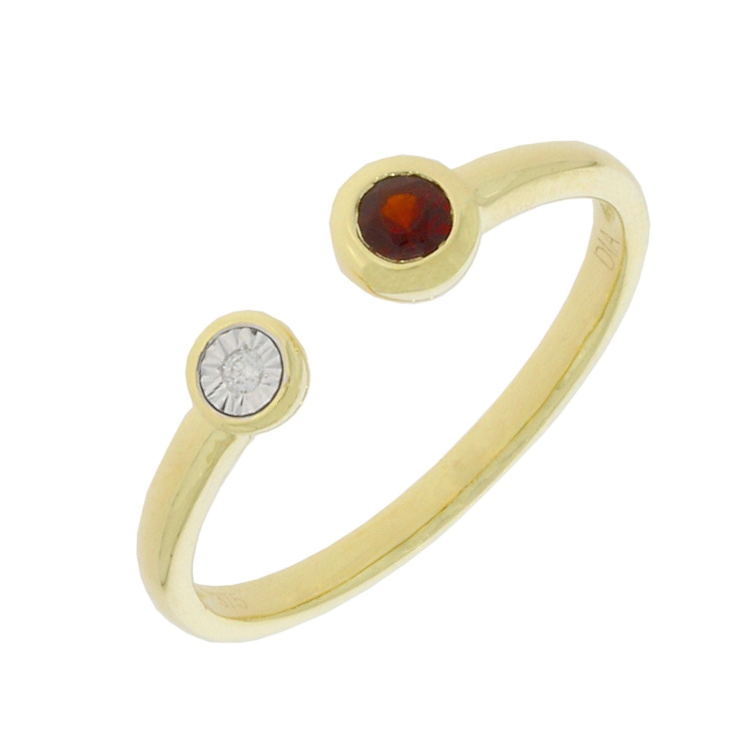 9ct Yellow Gold Garnet & 0.01ct Diamond Torque Ring N