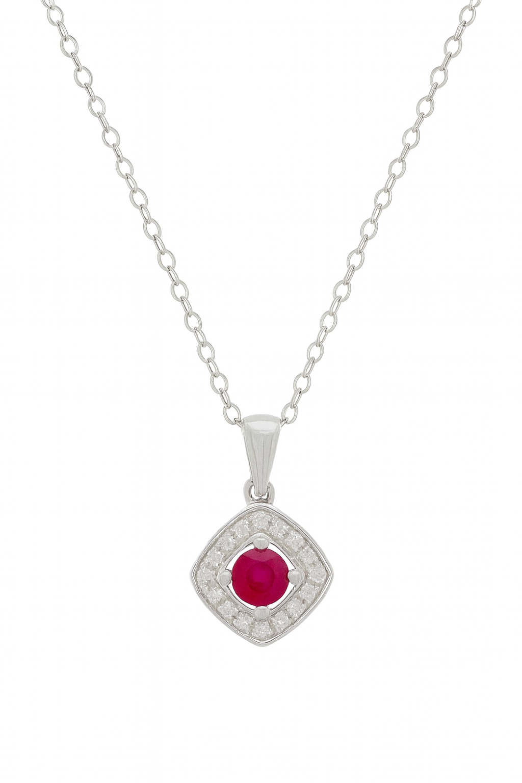 9ct White Gold Ruby & 0.10ct Diamond Pendant