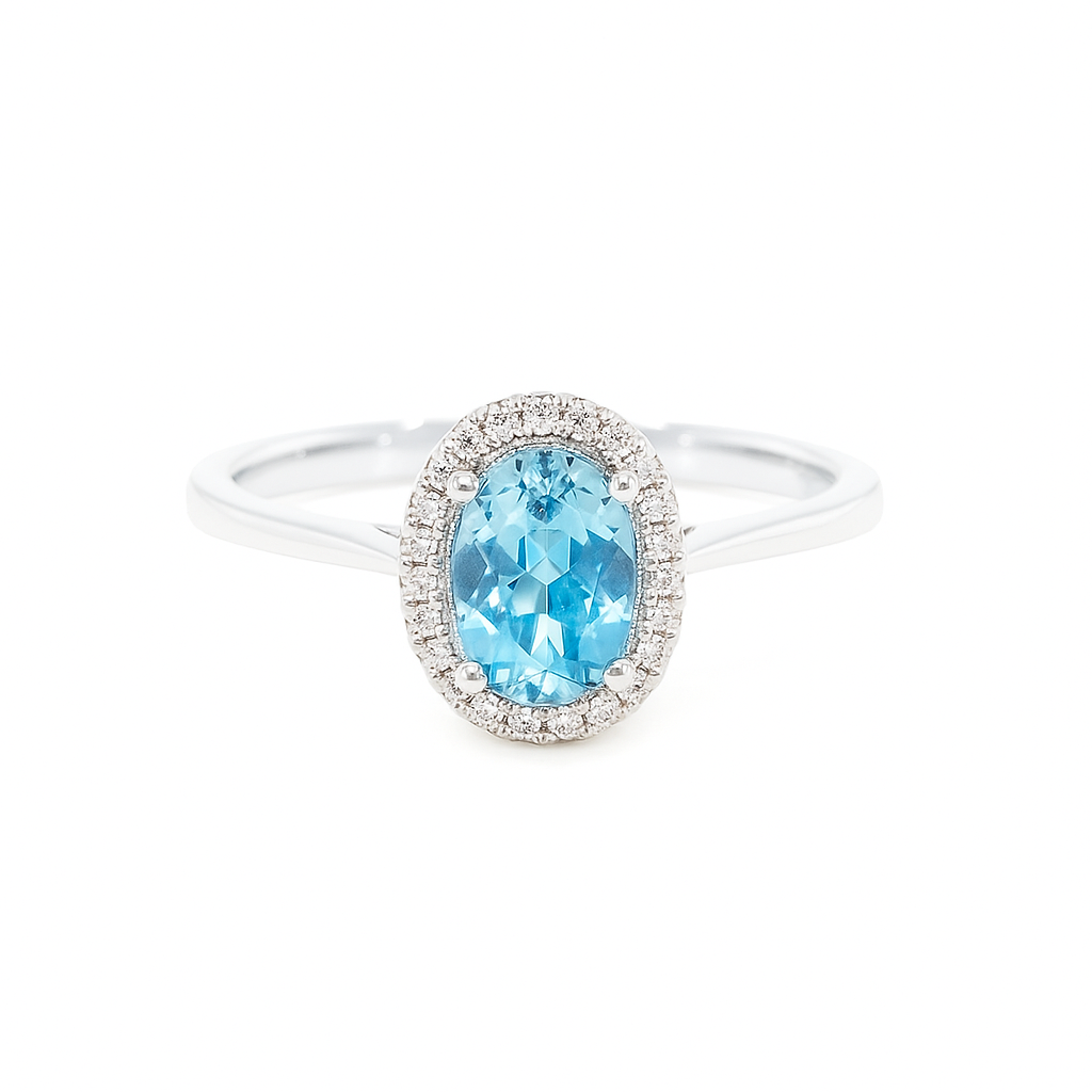 9ct White Gold 0.38ct Aquamarine & 0.08ct Diamond Ring N
