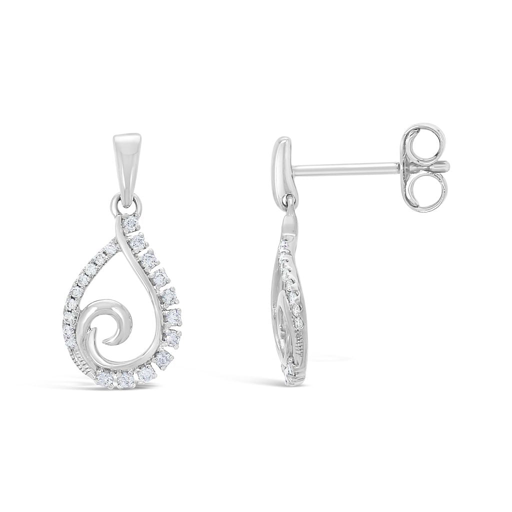 9ct White Gold 0.15ct Diamond Wave Earrings