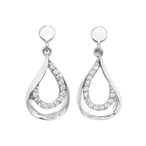 These 9ct white gold earrings feature a swirling design and are embellished with sparkling zirconia stones.