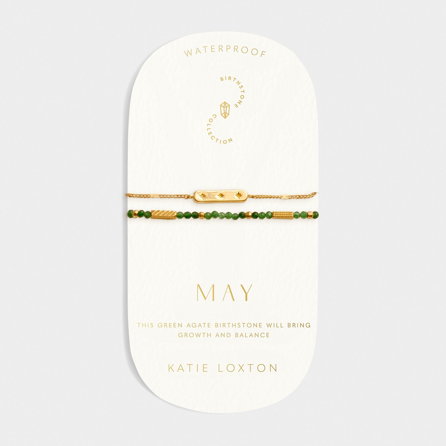 Certified waterproof, our 'May' Birthstone Bracelet is designed in durable 18K Gold PVD Coating, making it waterproof, sweat-proof, and life-proof. It features the month’s real semi-precious stone, Green Agate, and is beautifully presented on a card that highlights the birthday girl's unique traits. Length: 18cm.