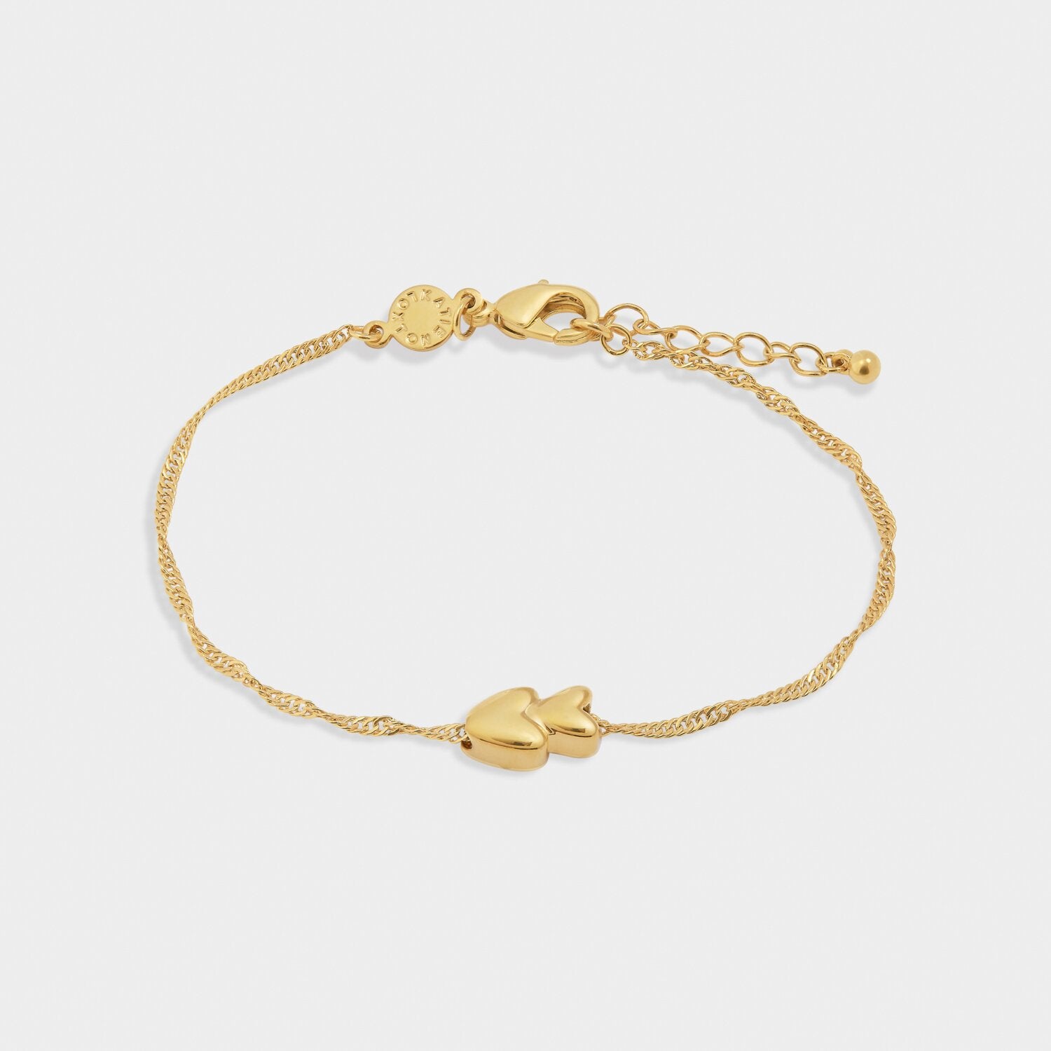 Certified waterproof, the 'So Loved' Waterproof Gold Sentiment Bracelet makes the ultimate gift for someone special, featuring a double heart-shaped charm. This style is perfect for pairing with the matching necklace.