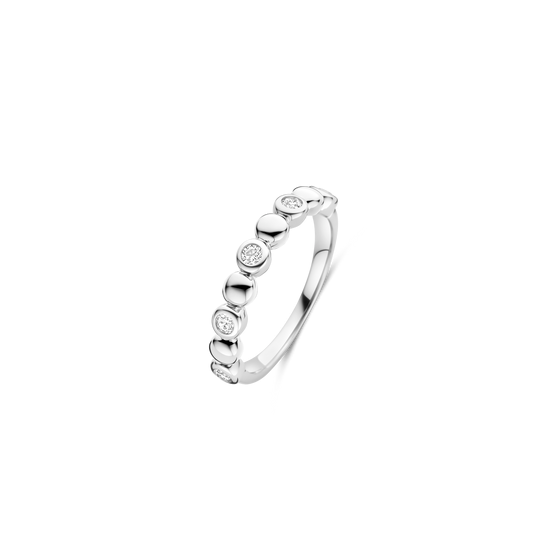 Celebrate the beauty of contrast with this TI SENTO Silver Ring 12365ZI, a modern classic that exudes effortless sophistication. Crafted from premium 925 sterling silver and plated with luminous platinum for a lasting, radiant finish, this ring features a captivating row of bezel-set white cubic zirconia stones alternating with polished silver balls.