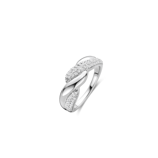 Wrap your finger with the loving embrace of this bold TI SENTO Silver Ring 12370ZI, a design that embodies the beauty of connection. Crafted from premium 925 sterling silver and plated with luminous platinum for lasting brilliance, this striking piece features two intertwined bands. One band shines with polished silver’s sleek simplicity, while the other sparkles with a stunning pavé of white cubic zirconia stones.