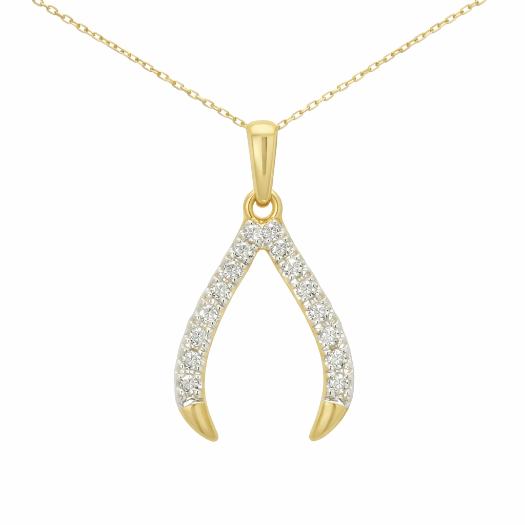 9ct Yellow Gold 0.08ct Diamond Wishbone Pendant