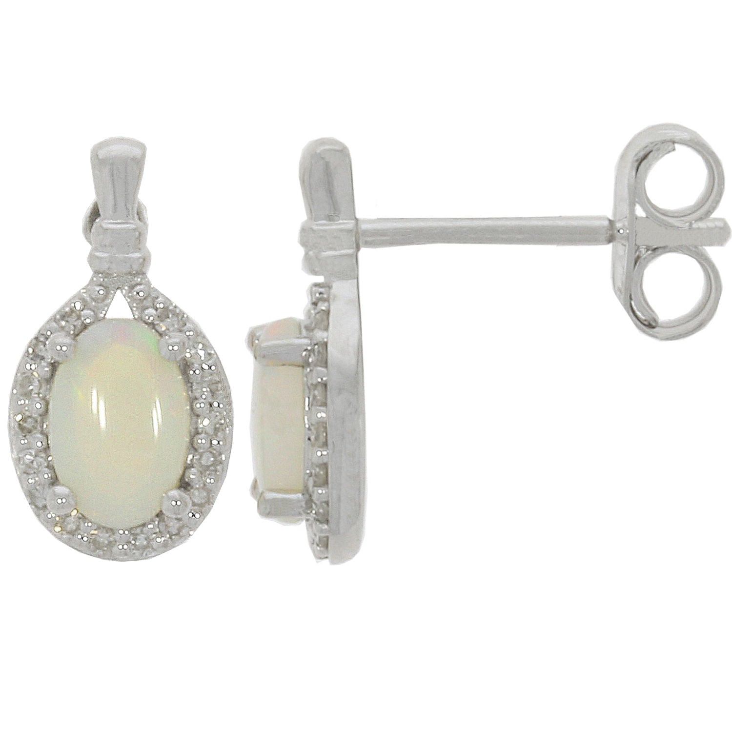 9ct White Gold 0.50ct Opal & 0.10ct Diamond Studs