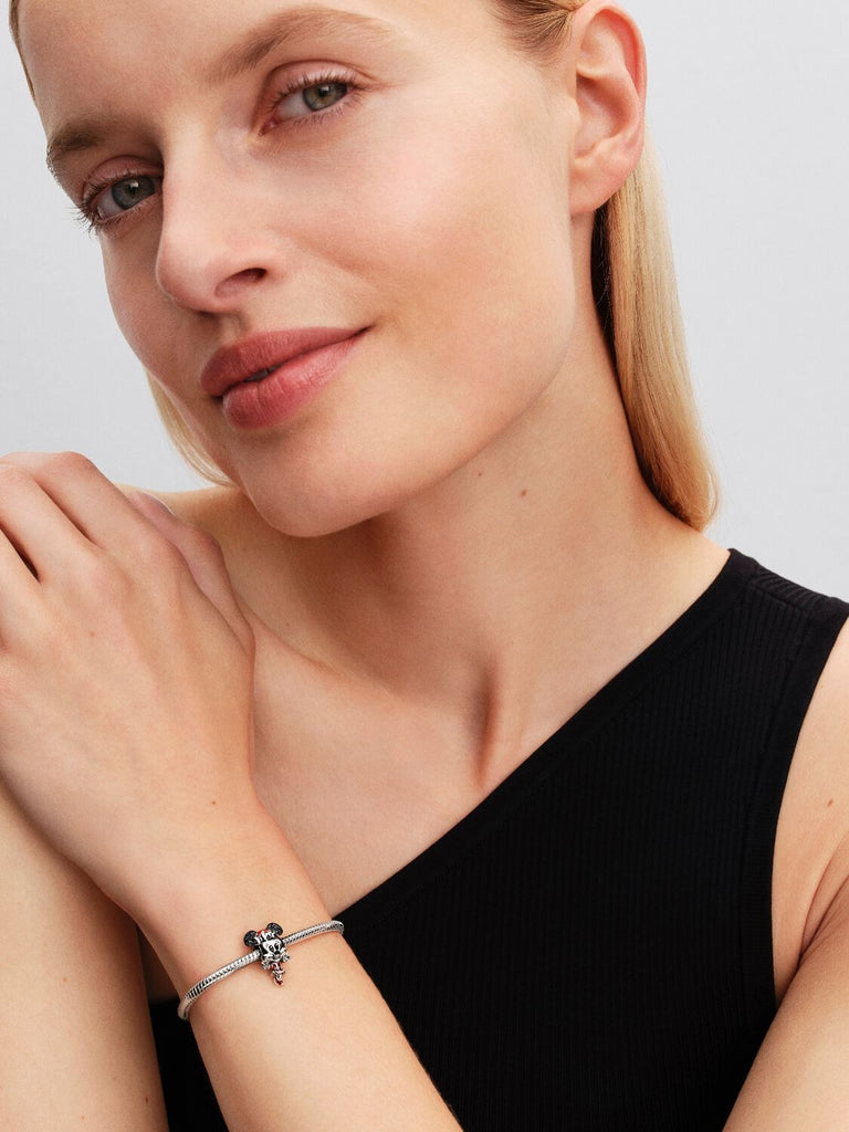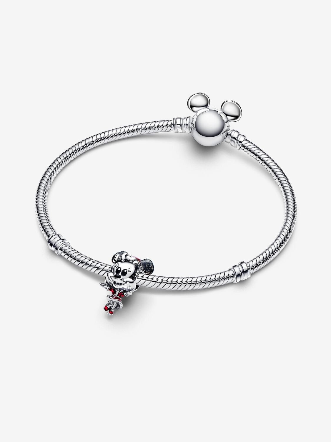 Disney's Minnie Mouse sparkles with festive charm. Crafted in sterling silver and featuring vibrant enamel detailing, her Santa hat and holiday outfit radiate warmth, joy and the magic of the season.