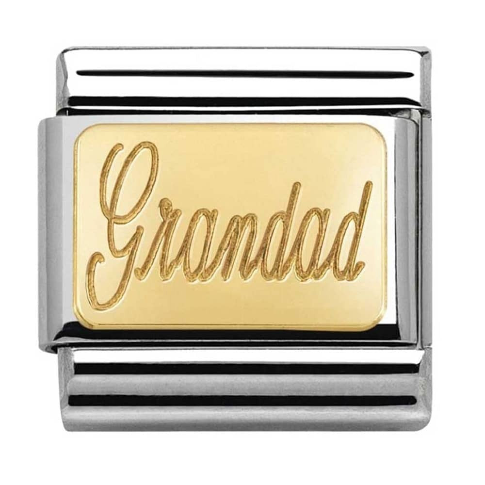 Charm for the Original Composable Classic bracelet with Grandad engraved in stainless steel and bonded yellow gold. Made in Italy.