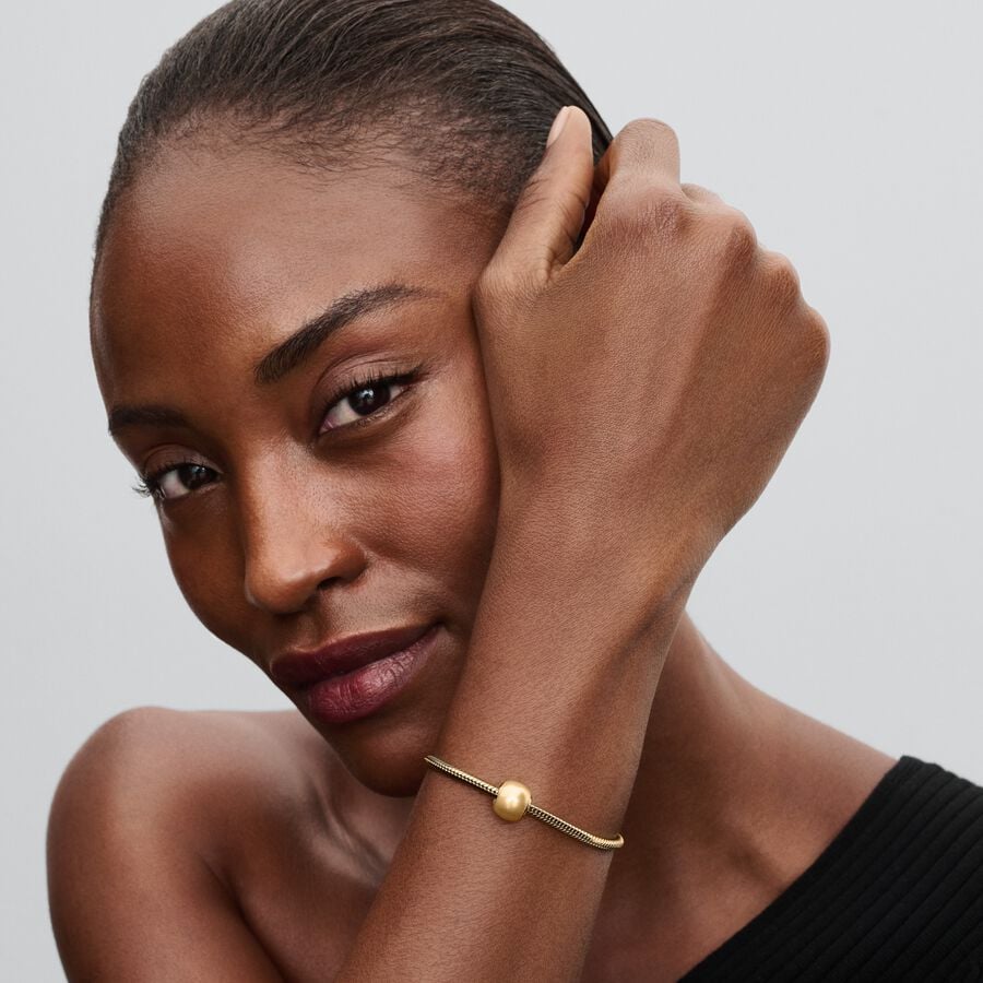 Elevate every look with our Golden Charm. This round white artificial pearl charm has a sterling silver core, allowing it to slide seamlessly onto your favourite carrier.