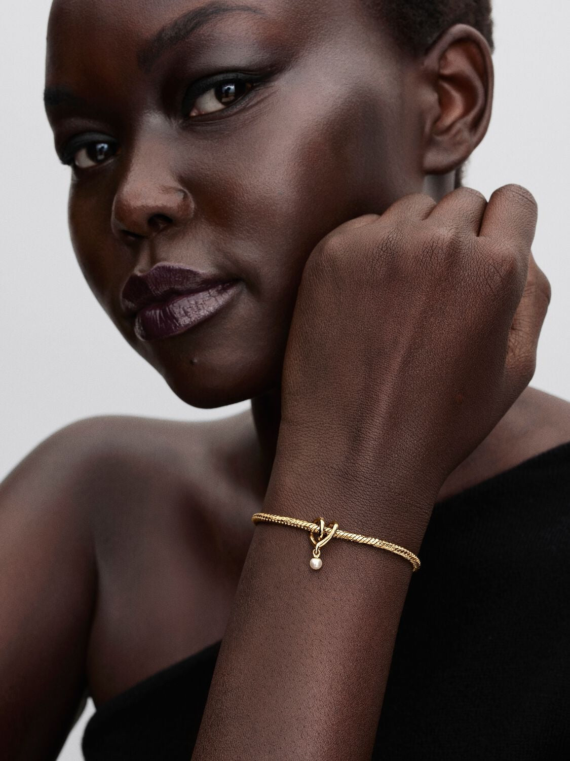 Carry love close with our 14k gold-plated charm. Featuring a heart engraved with “family, where love never ends” it’s finished with a white stone that gently dangles below.