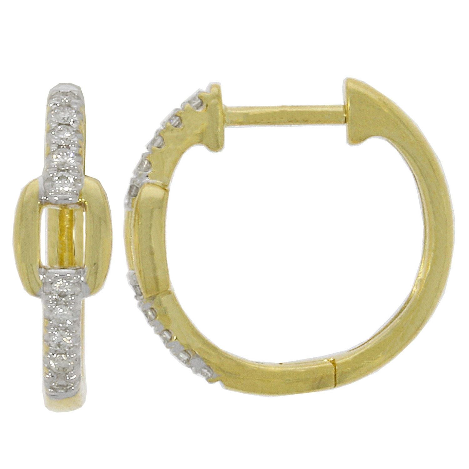 These hinged hoops are crafted from a blend of 9ct yellow and white gold, with an open link shape and 0.10ct inlaid diamonds along the front.