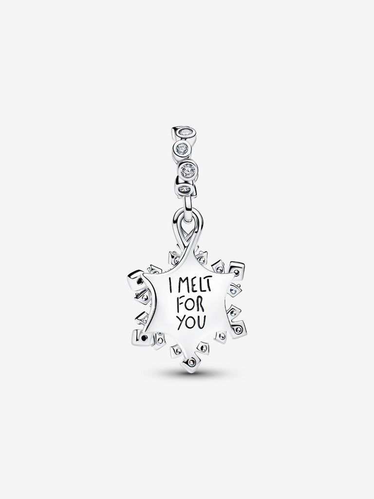 Channel winter wonder in sterling silver. This charm pairs a sparkling snowflake with a shimmering star featuring aurora lab-grown opal resin on one side and the engraving ‘I MELT FOR YOU’ on the other.