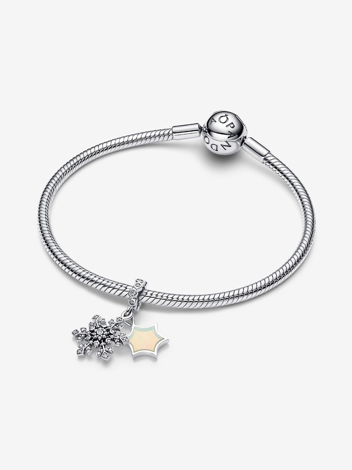 Sterling Silver Opalescent Snowflake Double Dangle Charm