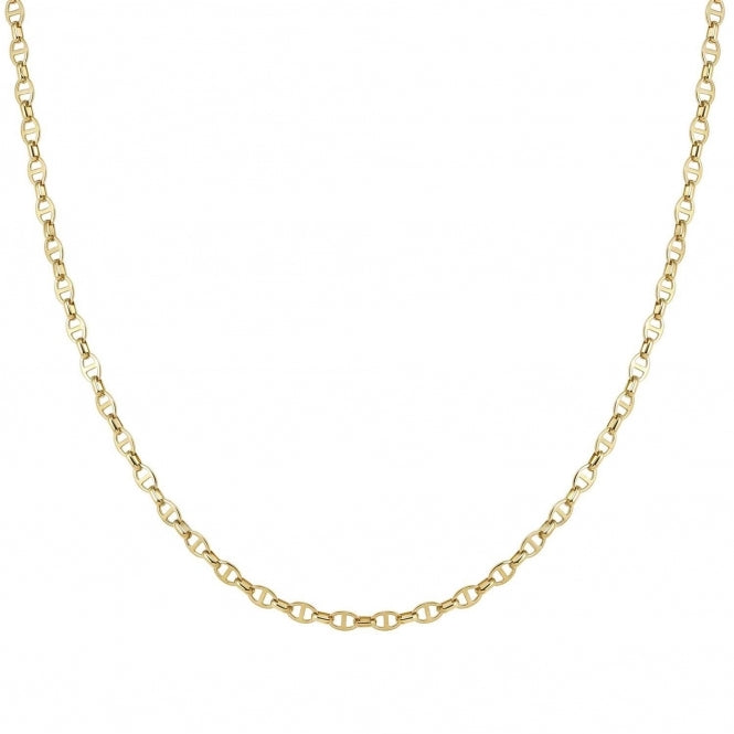 This gold PVD plated stainless steel necklace is ideal for those who appreciate sleek, understated jewellery. The long navy chain adds a sophisticated touch, making it perfect for both casual and formal occasions.