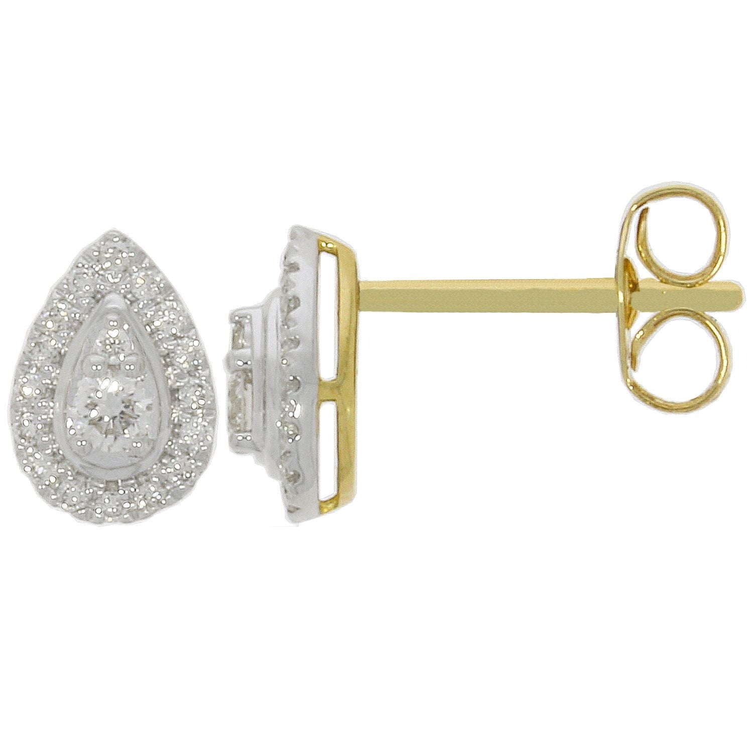 These stud earrings are crafted from a blend of 9ct yellow and white gold, with a pear shape and inlaid with 0.25ct diamonds.
