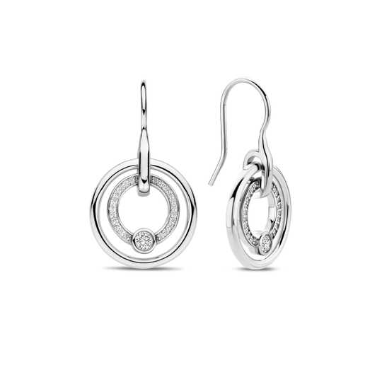 Embrace timeless sophistication with these TI SENTO Silver Earrings 7978ZI. Crafted from 925 sterling silver and plated with precious platinum to ensure they stay luminous and protected from scratches. The earrings feature a captivating double circle design. The inner circle shimmers with a dazzling pave of cubic zirconia, drawing the eye to a central round white zirconia stone. These exquisite earrings embody the symbol of infinity, representing endless energy and unity. They add a touch of joie de vivre to your look, offering a touch of escapism from the everyday. The circle shape speaks to the limitlessness of life, a concept beautifully explored in the TI SENTO collection. Express yourself with these ethereal earrings, perfect for adding a touch of modern glamour to any ensemble. Crafted with care for sensitive skin, these nickel-free and hypoallergenic earrings ensure lasting comfort and quality.