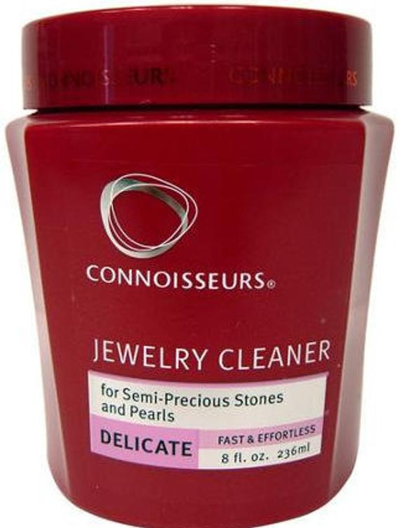 Formulated to gently clean and revive the brilliance to delicate jewellery and costume jewellery. Connoisseurs Delicate Jewellery Cleaner is ideal for gold plated jewellery, semi-precious and delicate stones such as pearls, opals, turquoise, coral and onyx. Ammonia-Free. It can also be used on costume and fine jewellery.
