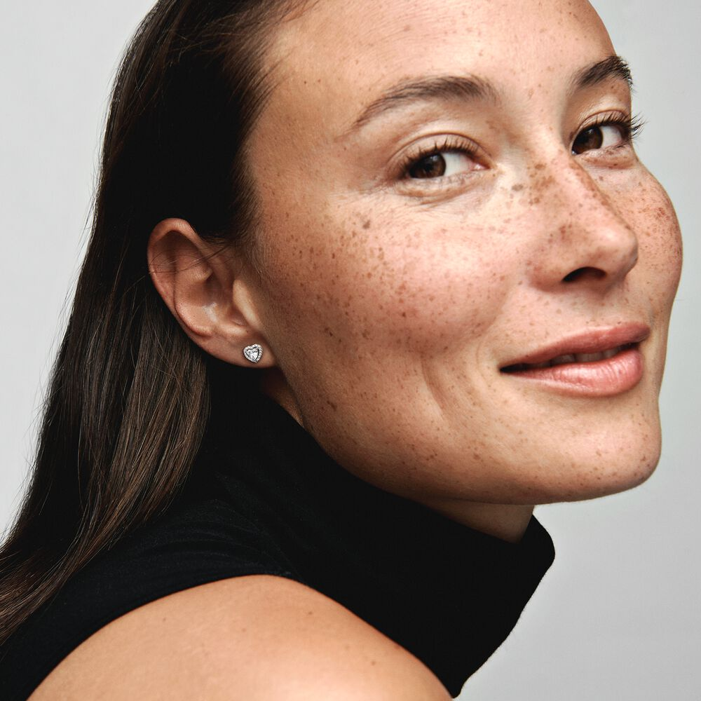 Is there a more romantic way to express your love and appreciation than to give your loved one a set of heart-shaped stud earrings? These timeless and dreamy sterling silver earrings feature an elevated cubic zirconia setting for extra brilliance and sparkle. The sparkling ear studs are a classic style that will be treasured for years to come thanks to its sophisticated, yet simple design. Wear alone or together with the matching necklace for a co-ordinated and elegant look.