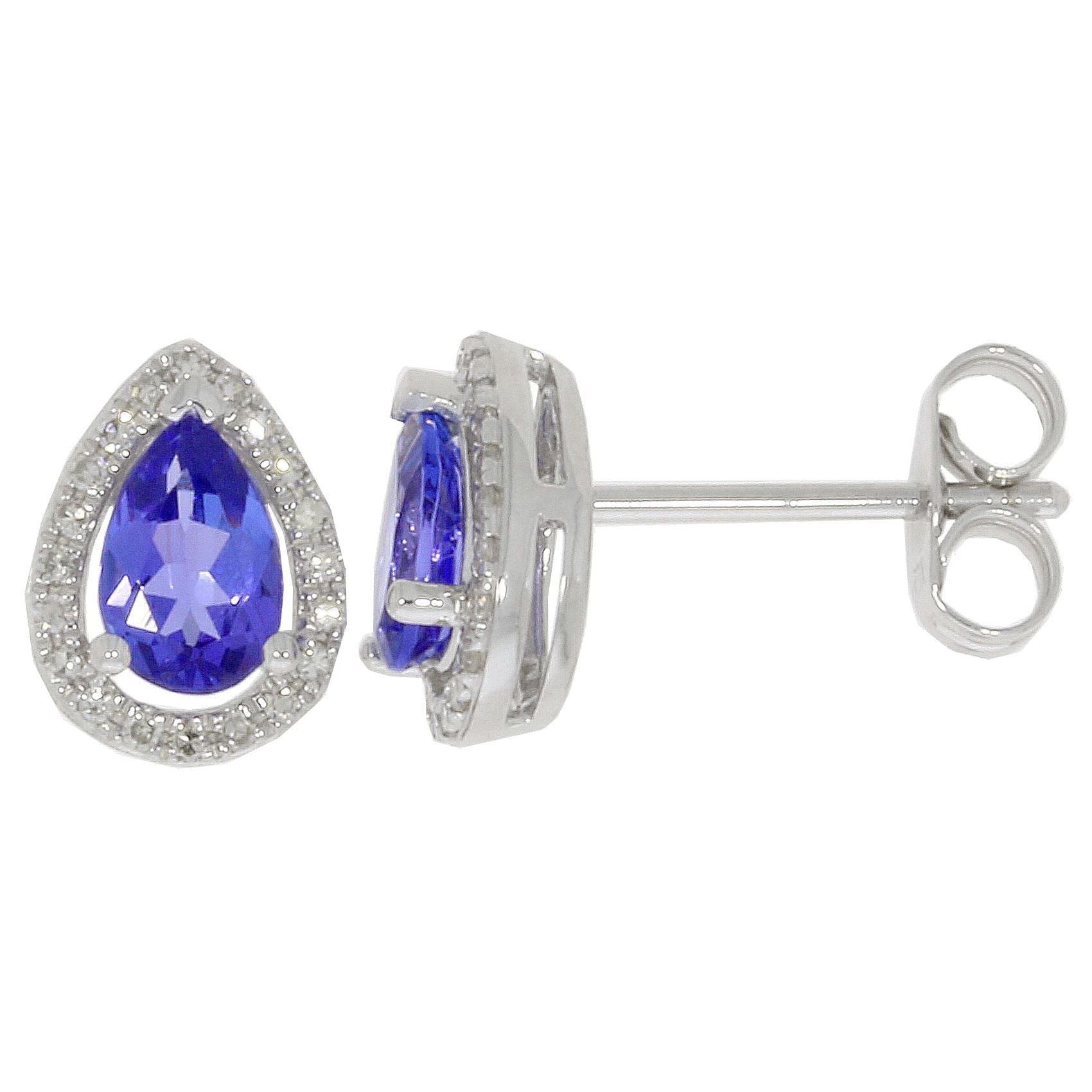 9ct White Gold Pear Cut Tanzanite & 0.13ct Diamond Studs