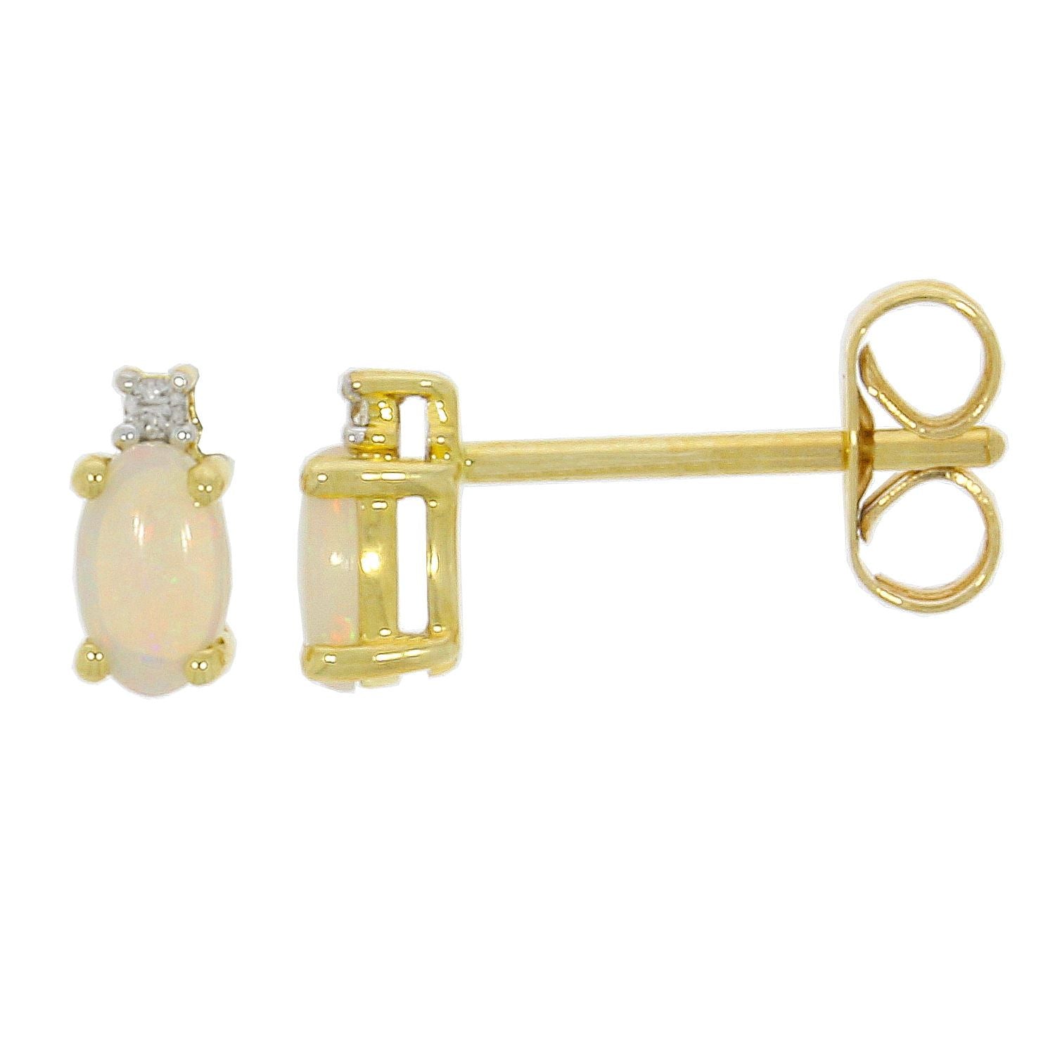 9ct Yellow Gold Oval Cut Opal & 0.02ct Diamond Studs