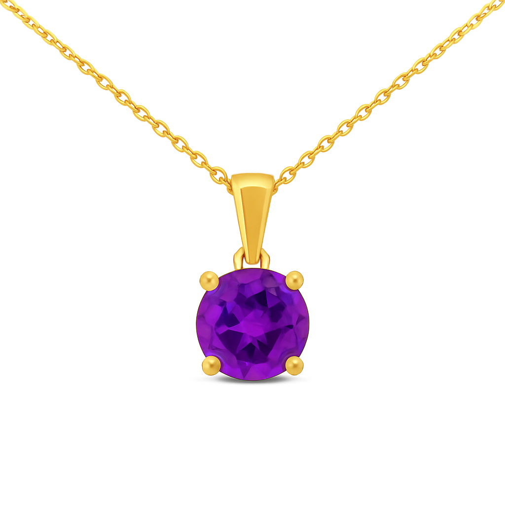 9ct Yellow Gold Round Cut Amethyst Pendant